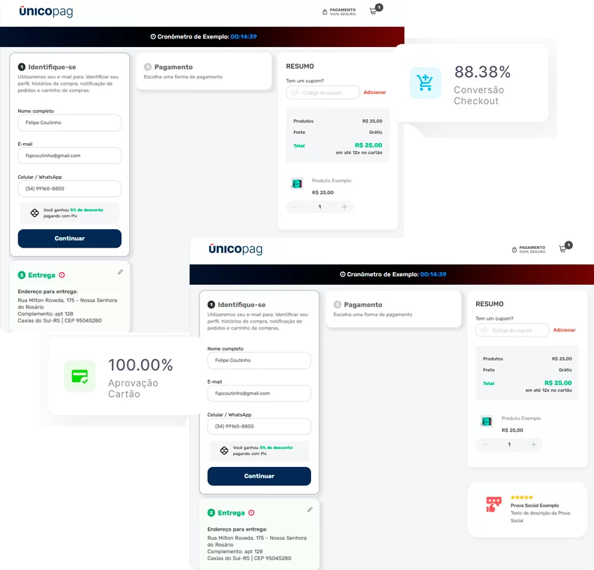 Com o checkout da ÚnicoPag, você oferece uma experiência de pagamento rápida, fluida e 100% personalizável.